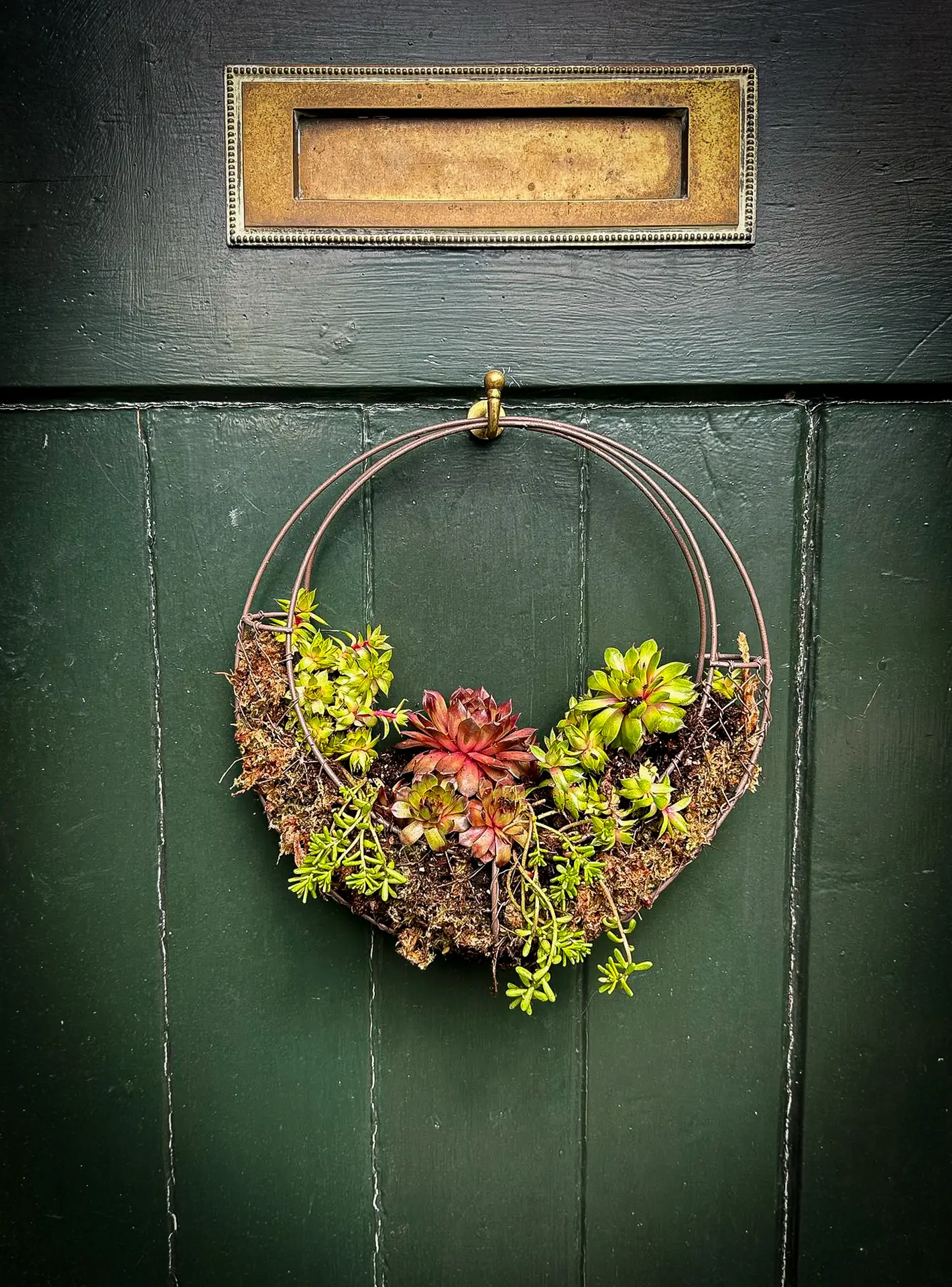 Style your front door all year round with a hanging succulent wreath basket. These wreaths contain sempervivums, which are hardy plants. Native to the UK these succulents are to be kept outside all year round.